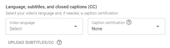 Scroll down again until you reach the CC/Subtitles section. Choose your video’s language and click on “Upload Subtitles”. Choose your subtitle/captions file, click on Open. Click on Save when you’re done!